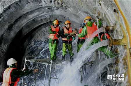 “最后一兩百米的時候還發(fā)生過兩次小塌方,因為當時的圍巖是輝綠巖,自穩(wěn)性非常差,遇水就變成泥狀?!敝需F一局大瑞鐵路項目常務副指揮長劉小榮介紹,4月份以來,施工單位快速有序復工復產(chǎn),1500多人晝夜奮戰(zhàn),按下施工“快進鍵”,實現(xiàn)全隧順利貫通。
