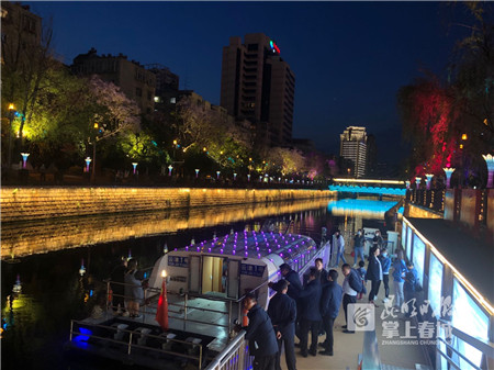 “21日盤龍江觀光試驗(yàn)段部分航運(yùn)恢復(fù)以后,受到了市民的高度關(guān)注和廣泛好評(píng),游客乘船需求明顯增加,每日乘船游覽盤龍江的市民和游客數(shù)量都在80人次左右?!崩ッ鞯釢櫳鷳B(tài)環(huán)境科技有限責(zé)任公司相關(guān)負(fù)責(zé)人介紹說,“為積極響應(yīng)市政府‘點(diǎn)亮夜間經(jīng)濟(jì)、繁榮夜間市場(chǎng),帶動(dòng)餐飲、娛樂、購物、旅游等多行業(yè)發(fā)展’的號(hào)召,昆明滇潤生態(tài)環(huán)境科技有限責(zé)任公司在總結(jié)復(fù)航以來的試航經(jīng)驗(yàn)的同時(shí),也做了大量夜航前期準(zhǔn)備工作。根據(jù)試運(yùn)行以及夜航實(shí)船空載試驗(yàn)、載客運(yùn)輸試驗(yàn)的情況,我公司決定從5月1日起,開通圓通橋??奎c(diǎn)(桃源廣場(chǎng)中心碼頭)—希橋酒店附近水域—鴻城賽特附近水域—圓通橋停靠點(diǎn)(桃源廣場(chǎng)中心碼頭)段夜航試運(yùn)行,以活躍夜間商業(yè)和市場(chǎng),打造夜間消費(fèi)場(chǎng)景和集聚區(qū),提高夜間消費(fèi)便利度和活躍度,打造水運(yùn)行業(yè)夜間經(jīng)濟(jì)重要平臺(tái)”