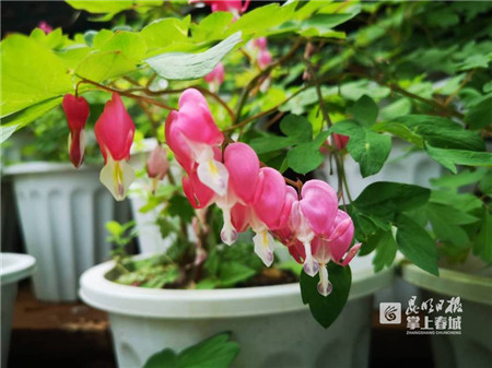“這是什么花呀?一串串小紅花像倒掛的金鐘,葉子卻跟牡丹一模一樣?”在金殿太和宮門口,已經(jīng)展出的百余盆奇特的小花吸引了游客的關(guān)注。“這是荷包牡丹,也叫活血草,它不是真正的牡丹花,但因葉似牡丹葉,花朵像荷包,所以叫荷包牡丹。”金殿名勝區(qū)相關(guān)負責(zé)人,荷包牡丹常被人以為與牡丹是同一類植物,實際二者屬于不同的科。牡丹屬于毛茛科芍藥屬,荷包牡丹屬于罌粟科荷包牡丹屬。