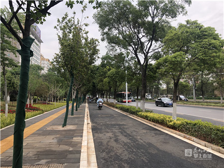“彩云北路官渡區(qū)段居民小區(qū)和商業(yè)業(yè)態(tài)發(fā)展迅速、車流人流急劇增加,非機動車市民混行較為嚴重。按照市容整治提升改造的需要,此次示范段從永中路到新螺螄灣段,對非機動車道和人行道進行了分離,讓行人行走更安全,讓非機動車行駛更順暢?!惫俣蓞^(qū)市容環(huán)境綜合整治協(xié)調(diào)辦公室負責人王一鋒介紹,結合26條道路的綜合整治和提升,官渡區(qū)從綠化、亮化、美化等方面入手,在彩云北路官渡段的示范段將機動車、非機動車、人行道進行了分離?!盀榱烁玫乇U闲腥税踩痉抖卧诩毠?jié)方面也做了不少工作,包括將人行道墊高15厘米,將凹在路邊的圓形窨井通過路磚填補的方式填平方便市民和非機動車行走?!蓖跻讳h表示,此次彩云北路官渡段示范路段的建成,將為彩云北路官渡區(qū)段及其他官渡區(qū)道路提供建設示范。
