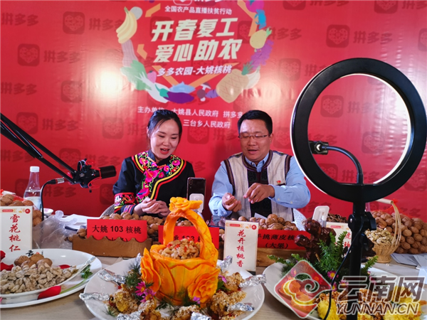 “大姚素有‘中國核桃之鄉(xiāng)’的美譽(yù),目前培育核桃已有三千多年的歷史?!眲⑽能S在直播間里說道,“殼薄、仁白、營養(yǎng)、易保存,這是大姚核桃的優(yōu)點(diǎn)。而且,大姚的核桃都是紙皮核桃,用手就可以輕松捏開?!辟Y料顯示,大姚核桃是中國國家地理標(biāo)志產(chǎn)品,大姚縣因此也被稱為“中國核桃之鄉(xiāng)”,并成為西南核桃交易中心,中國首個(gè)核桃生物產(chǎn)業(yè)基地在這里落地。
