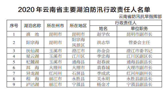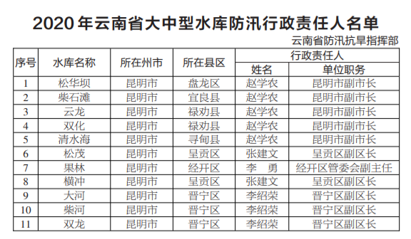 (完整2020年云南省大中型水庫(kù)防汛行政責(zé)任人名單點(diǎn)擊此處下載查看)