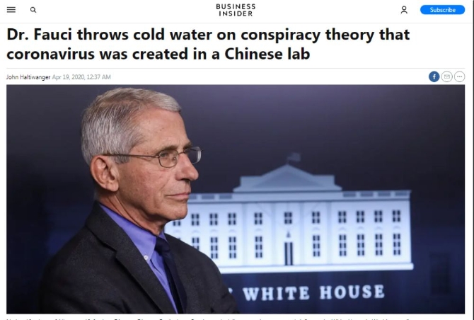 美國商業(yè)內(nèi)幕網(wǎng)站報(bào)道,以直言不諱著稱、被中國網(wǎng)友稱為“美國鐘南山”的流行病學(xué)專家安東尼·福奇為病毒源自中國實(shí)驗(yàn)室的陰謀論“潑冷水”。