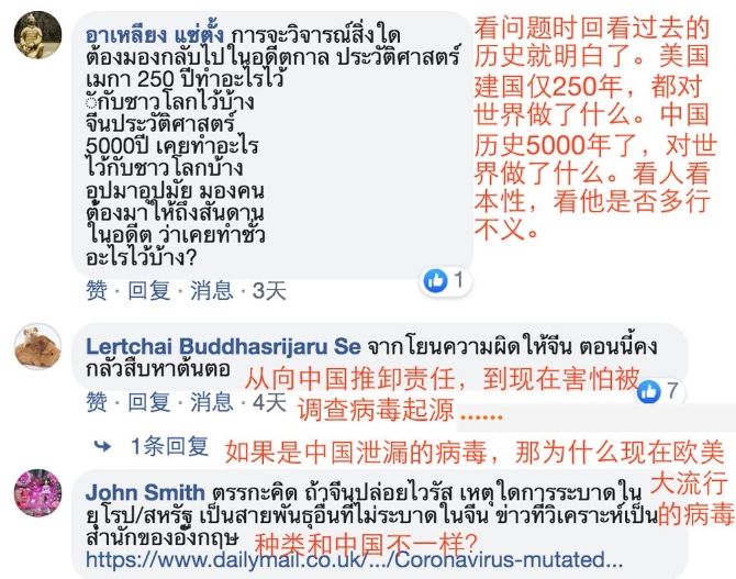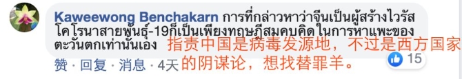 新華社泰語臉譜賬號(hào)報(bào)道《法國專家反對(duì)“病毒來自實(shí)驗(yàn)室”陰謀論》也獲得大批泰國網(wǎng)友跟帖力挺。