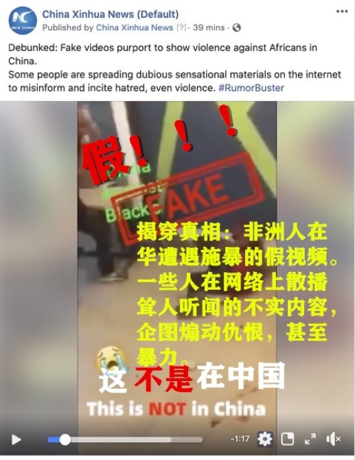 令人氣憤的是,為了挑撥是非、煽動(dòng)仇恨,還有一些人借助社交網(wǎng)絡(luò)惡意散布所謂“非洲人在中國遭毆打”的假視頻。新華社隨即發(fā)布“打假”視頻,戳穿真相:這都不是在中國!