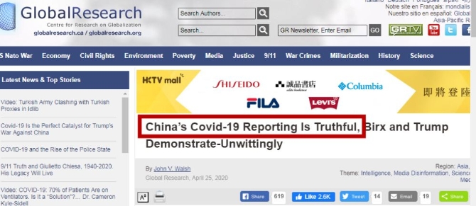 美國全球研究咨詢公司網(wǎng)站刊登美國馬薩諸塞大學(xué)醫(yī)學(xué)院前生理學(xué)和細(xì)胞神經(jīng)科學(xué)教授約翰·沃爾什的文章,批評(píng)白宮刻意用謊言抨擊中國。沃爾什說,與美國的說辭相反,中國報(bào)告的疫情數(shù)據(jù)完全符合現(xiàn)實(shí)。