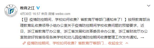 浙江:做好各級(jí)各類(lèi)學(xué)校疫情防控期間收費(fèi)管理工作