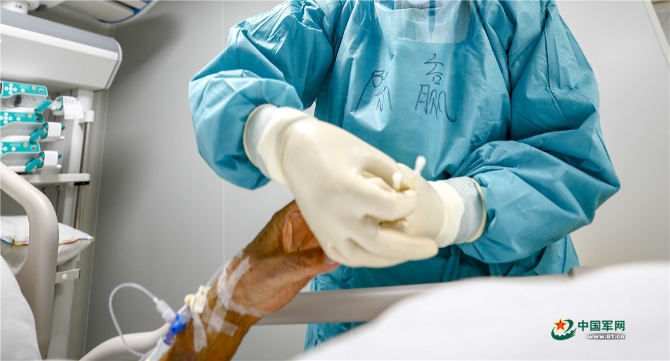 醫(yī)護人員為新冠肺炎患者做護理。王皓宇 攝