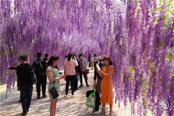 人們?cè)邗r花大道和鮮花隧道中穿行留影