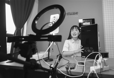 圖為5月6日,在位于長(zhǎng)興縣的浙江德恩特電器公司直播間內(nèi),工作人員通過(guò)線上直播的方式介紹新款速熱電熱水器。新華社 記者徐昱攝