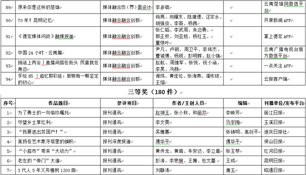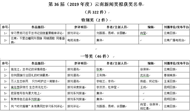 昆明信息港訊 記者昝娟娟 5月7日,第36屆云南新聞獎、2019年度云南新聞論文獎獲獎作品公示。昆明信息港11件作品入圍云南新聞獎,其中3件作品擬獲一等獎;云南新聞論文獎評選出62篇獲獎作品,昆明信息港2件作品擬獲獎。