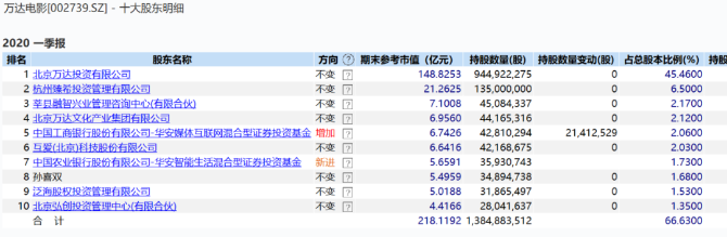 一季度,萬達電影前十大股東中,華安傳媒互聯(lián)網(wǎng)混合型證券投資基金、華安智能生活混合型證券投資基金躋身前十,合計持股約7874.1萬股,占比3.79%,較去年底的2139.8萬股大幅增持。