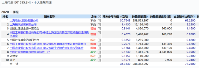 老牌國資影投上海電影亦獲得包括華安基金、社保基金等機構(gòu)加倉。