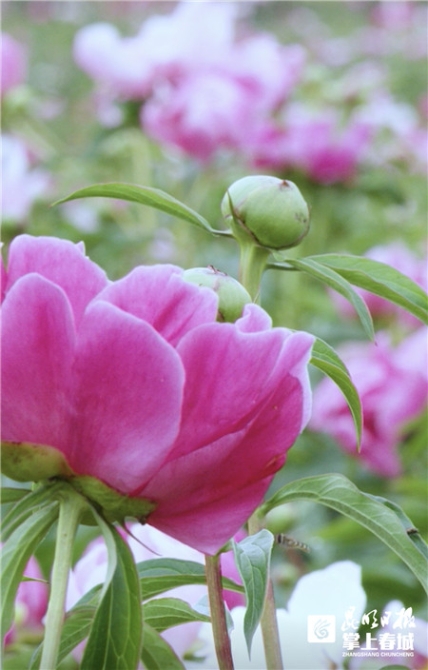 芍藥,別名別離草,是中國(guó)“十大名花”之一,被人們譽(yù)為“花仙”和“花相”,品種花色豐富,有白、粉、紅、紫、黃、綠、黑和復(fù)色等,花徑為10至30厘米,花瓣可達(dá)上百枚。芍藥為多年生植物,在保持生態(tài)多樣性、綠化美化環(huán)境等方面具有獨(dú)特功能和作用。昆明地區(qū)的芍藥花通常在4月中旬至5月上旬開(kāi)放,花期約一個(gè)月。