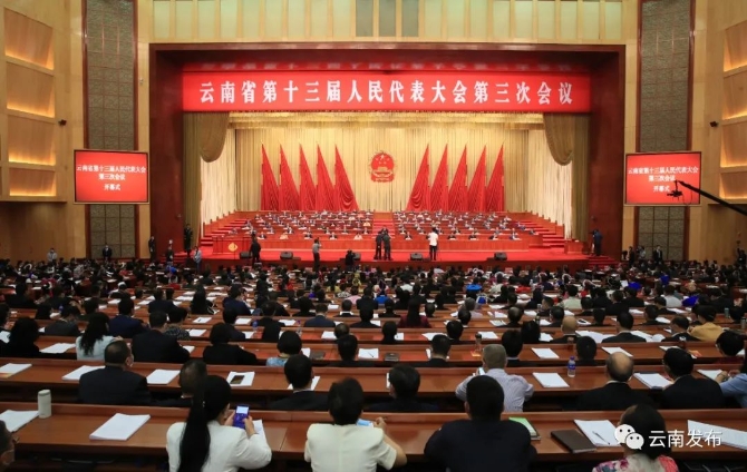 云南省第十三屆人民代表大會(huì)第三次會(huì)議在昆隆重開幕。記者 陳飛/攝