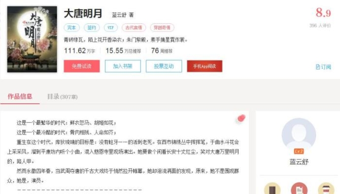 起點(diǎn)中文網(wǎng)的《大唐明月》頁面。網(wǎng)頁截圖