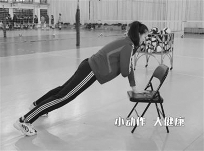 ●俯臥支撐姿勢(shì)。雙手扶辦公椅(或俯臥支撐在地面);
