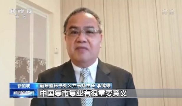 前東盟秘書處公共事務(wù)主任 李鍵雄:中國復(fù)市復(fù)業(yè)有很重要意義,首先它對市場起到了定心丸的作用,中國是世界最大的消費(fèi)市場之一,也是重要的制造業(yè)中心,當(dāng)工廠復(fù)工復(fù)產(chǎn)商業(yè)逐步復(fù)市復(fù)業(yè),傳遞出經(jīng)濟(jì)復(fù)蘇的信號,這非常重要。