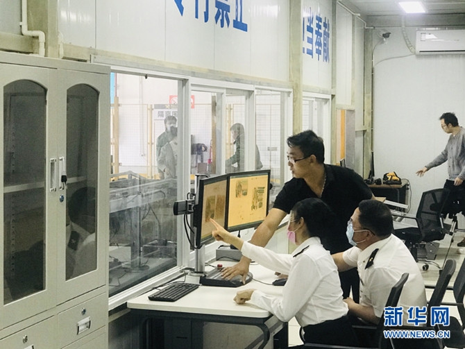 5月9日,昆明海關所屬昆明郵局海關關員正在驗放出口跨境電商貨物。(昆明海關供圖)