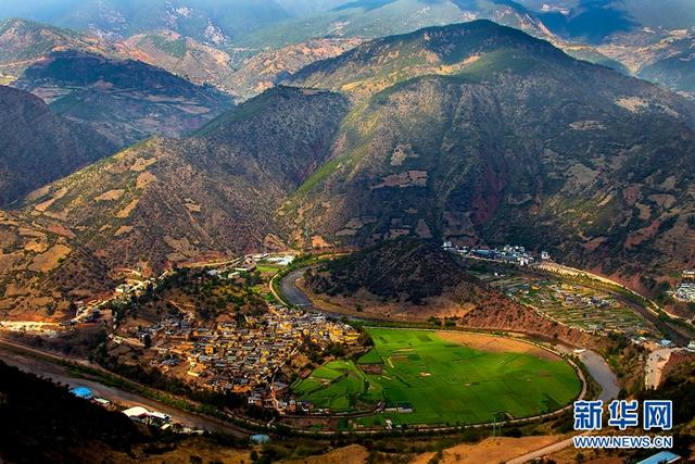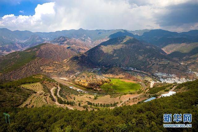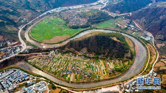 在云南省大理州云龍縣城北面,“藏著”一幅巨大的“太極圖”。從群山之中奔流而來的沘江,流經(jīng)此處時,在莊坪壩子和連井坪壩子之間繞出了一個“S”型的大灣子,從高處望去,山水之間,儼然一幅天然雕琢的“太極圖”,氣勢磅礴,神奇壯美,令人嘆為觀止。