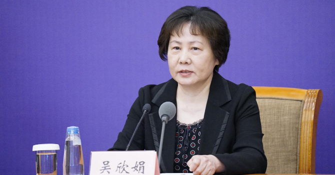 吳欣娟在國務(wù)院聯(lián)防聯(lián)控機(jī)制新聞發(fā)布會(huì)上發(fā)言 (央視網(wǎng)記者 劉亮/攝)