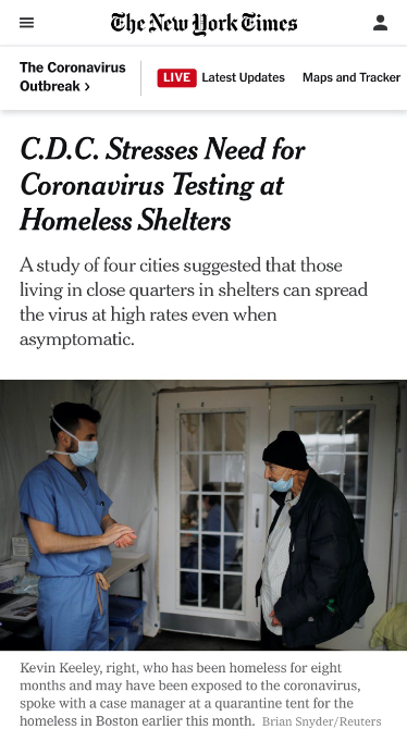 △《紐約時報》報道指出,無癥狀傳播正在造成無家可歸者大面積群體感染事件