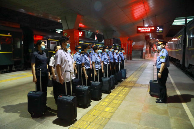 5月10日晚,北京西至成都的T7次列車終到成都站,旅客下車及工作交接完畢后,列車長組織職工集合退乘點名。李鍇/攝