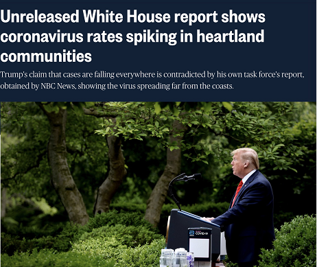 NBC5月12日報(bào)道《白宮內(nèi)部報(bào)告顯示病毒仍在美國腹地傳播》