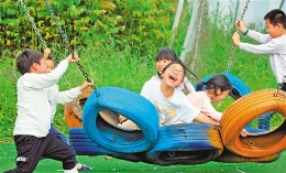 5月12日,在山西省大同市云岡石窟景區(qū),游客走過用廢棄鍋爐加熱板制成的乘涼亭。 近年來,云岡石窟景區(qū)利用當(dāng)?shù)亻_山廢石、石材廠廢料、工礦淘汰機具等,進行景區(qū)美化,建設(shè)服務(wù)設(shè)施,走上一條固廢利用的創(chuàng)新之路。 新華社發(fā) (柴婷 攝)
