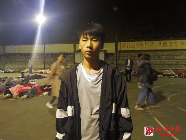 初三學(xué)生陳有全是小河鎮(zhèn)拖車(chē)村橫梁子村民小組的,他家離學(xué)校有15公里,陳有全長(zhǎng)期住校,撤離到安全地帶后,他第一打電話給父母報(bào)平安,詢(xún)問(wèn)父母的安危。這次地震讓他最為感動(dòng)的是,同學(xué)們都非常的團(tuán)結(jié),一床被子幾個(gè)人分著蓋,生怕對(duì)方冷到。陳有全哽咽地說(shuō):“現(xiàn)在到了半夜,老師們都在旁邊守護(hù)著我們,幫同學(xué)們蓋被子,老師們也有家人,這個(gè)時(shí)候也還顧著我們,讓我們很感動(dòng)?!泵扛羰昼娋陀刑鼐趯W(xué)生們睡覺(jué)的地方巡邏,這讓他們倍感安全。
