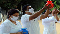 5月14日,在斯里蘭卡科倫坡,一名理發(fā)師為顧客理發(fā)。 斯里蘭卡首都科倫坡在維持宵禁的同時(shí),公私營(yíng)部門的經(jīng)濟(jì)活動(dòng)從5月11日起開始恢復(fù)。為防止疫情蔓延,斯里蘭卡政府自3月20日起在全國(guó)實(shí)行宵禁。 新華社發(fā)(加揚(yáng)·薩米拉攝)