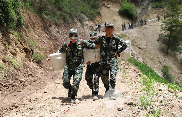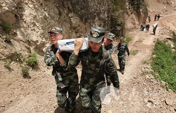 面對困難和危險,“他們太像神兵天將了。”一名長者這樣說,平時走路都很困難的地方,官兵還要抬著近100余斤的救災物資和帳篷。
