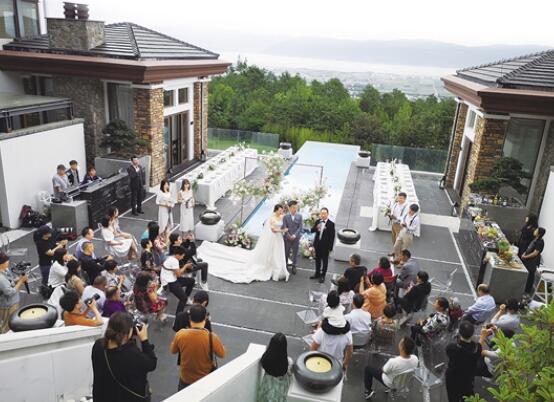 這場(chǎng)高端訂制婚禮的舉辦地大理海納爾·云墅度假酒店,是云南唯一的全球小型奢華酒店,婚禮的訂制費(fèi)用為28萬(wàn)元,包括了國(guó)內(nèi)一線攝影攝像團(tuán)隊(duì)來回包機(jī)航拍、婚禮策劃、包店住宿、晚宴等等相關(guān)費(fèi)用。酒店總經(jīng)理李錦娥說,酒店2018年開業(yè)以來,已接待了4場(chǎng)類似的包店訂制婚禮,訂制婚禮的新人以北上廣居多。
