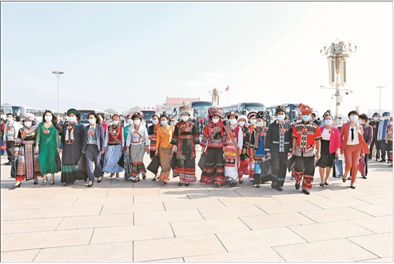 云南省代表團(tuán)各民族代表滿懷信心步入人民大會(huì)堂。本報(bào)記者 雷桐蘇 攝