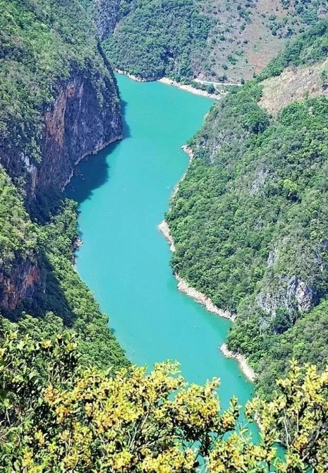 江水在峽谷底部穿碰折旋