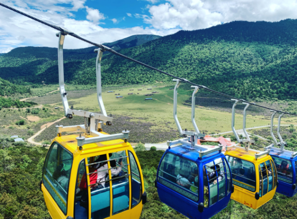 坐上纜車,緩緩地開始上山,除了優(yōu)美的歌聲,伴你的還有鳥兒的歌唱。幽靜的山谷,或蒼翠成蔭,或百花怒放,放眼只有藍(lán)天、白云、陽光、遠(yuǎn)山和村落,周遭美得讓人窒息。
