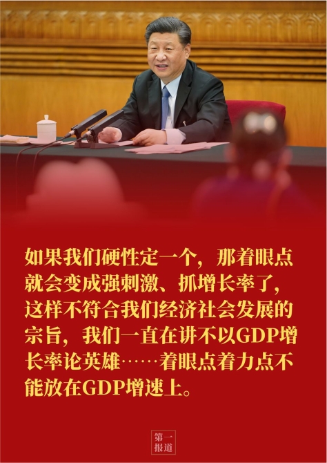 “如果我們硬性定一個(gè),那著眼點(diǎn)就會(huì)變成強(qiáng)刺激、抓增長(zhǎng)率了,這樣不符合我們經(jīng)濟(jì)社會(huì)發(fā)展的宗旨,我們一直在講不以GDP增長(zhǎng)率論英雄……著眼點(diǎn)著力點(diǎn)不能放在GDP增速上?!?/p>