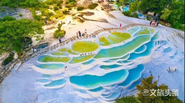 到了香格里拉,一定不能錯過的就是白水臺,這個坐落于哈巴雪山山麓,被稱為“仙人遺田”的地方。這是碳酸鈣溶解于泉水中而形成的自然景觀。含碳酸氫鈣的泉水慢慢下流,碳酸鹽逐漸沉淀,長年累月就形成臺幔,好似層層梯田,就形成無數(shù)塊層層疊疊蓄滿水的玉埂銀丘。層層白光在陽光下閃耀著,宛若一塊琥珀。