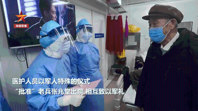 參加過(guò)抗美援朝戰(zhàn)爭(zhēng)的83歲患者張兆堂對(duì)軍隊(duì)醫(yī)務(wù)人員豎著大拇指說(shuō):“部隊(duì)一下來(lái),作風(fēng)也好,干勁又足,救了我家里兩個(gè)人的命啊!打了勝仗,這是你們的功勞啊!”出院之日,老兵張兆堂與年輕的軍隊(duì)醫(yī)務(wù)人員鄭重地互致軍禮。