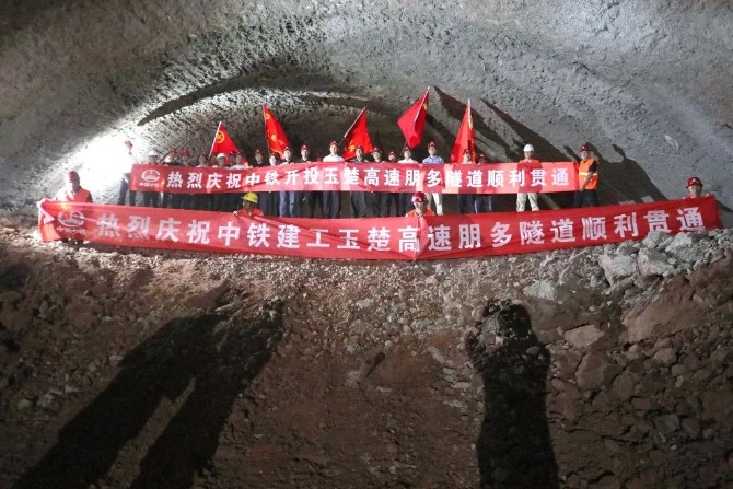5月25日下午,由中鐵建工集團有限公司承建的玉楚高速TJ-7標(biāo)朋多隧道右幅順利貫通。至此,玉楚高速公路朋多隧道左右雙幅順利貫通,比節(jié)點工期提前5天。