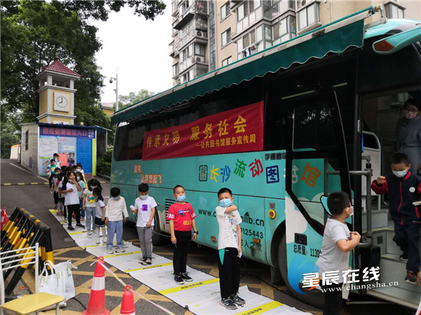 5月27日上午,長沙圖書館流動圖書車開進博才西湖小學(xué),早已等候多時的孩子們排成一隊有序上車借書。據(jù)星辰全媒體記者了解,每年5月的最后一周為全國公共圖書館服務(wù)宣傳周,今年,長沙圖書館流動圖書車一如既往地開進各個學(xué)校、社區(qū)、廣場,推出了“傳承文明,服務(wù)社會”為主題的服務(wù)宣傳周系列活動,引導(dǎo)市民閱讀。