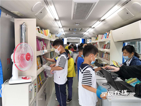 (此次長沙圖書館流動圖書車進校園也是“館校共建”活動的一部分。)
