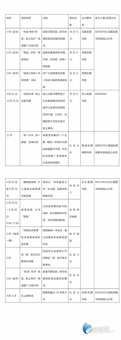 (本次公共圖書館服務(wù)宣傳周期間,長沙圖書館總分館104家成員館已恢復(fù)開放,并推出了以線上活動為主的各類閱讀推廣活動。均由通訊員供圖)