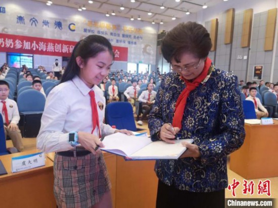 李蘭娟院士為學(xué)生簽名。 童笑雨 攝