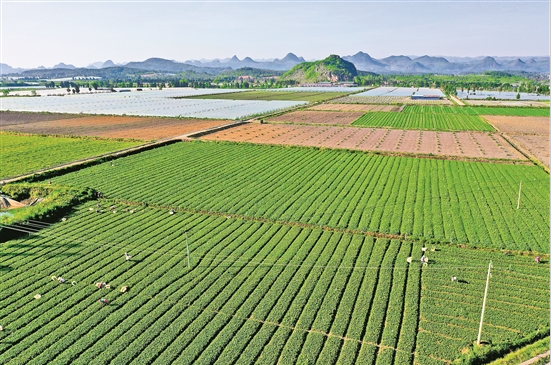 近年來,丘北縣大力發(fā)展蔬菜種植產(chǎn)業(yè)。正輝農(nóng)業(yè)開發(fā)有限公司在新寨村流轉(zhuǎn)3700畝土地,安裝“水肥一體化”噴灌設(shè)施,建成規(guī)?;F(xiàn)代農(nóng)業(yè)蔬菜生產(chǎn)基地,同時建設(shè)大型冷庫,蔬菜銷往上海、廣東等地。(云南日報 記者張彤)