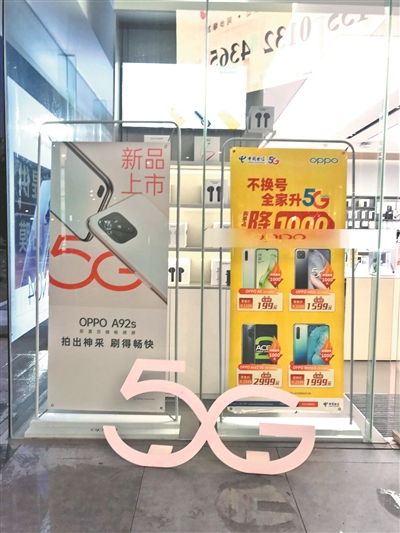 為吸引更多4G用戶升級5G網(wǎng)絡(luò),配合眾多手機廠商推出的各款中端新機,運營商還打出了以現(xiàn)金返還減免話費的優(yōu)惠策略。在OPPO手機專賣店里,工作人員陳小姐告訴記者,5月初才上市的A92是目前OPPO價格最低的5G手機,內(nèi)存6GB版本標(biāo)價2299元:“店里最受歡迎的5G手機是Reno3,原價2999元,運營商有500元的5G套餐優(yōu)惠,到手價就是2499元。”