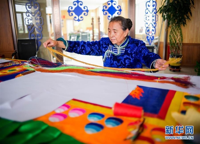 自幼隨祖父和母親學(xué)習(xí)馬鬃繞線蒙古唐卡的制作技藝
