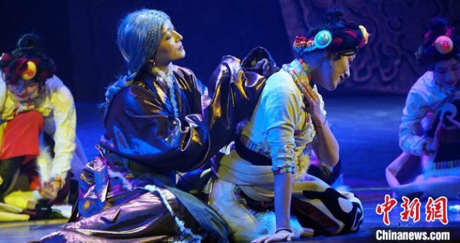 桑德說,作為藏族主要舞種的弦子舞在該劇中也廣泛使用,它有順擺彩袖、踏足擺頭、顫膝點(diǎn)步的舞蹈特點(diǎn),淋漓盡致地表現(xiàn)了藏族人民對美好生活的無限向往和憧憬。