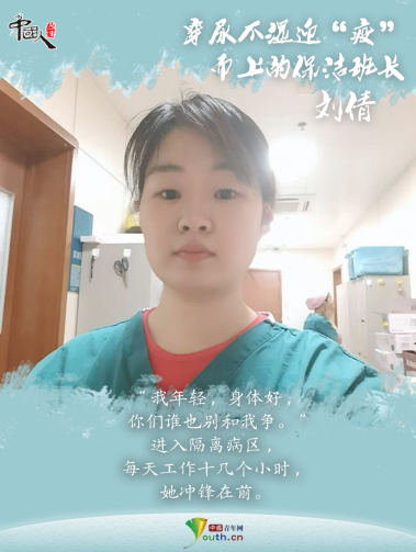 作為保潔班長,劉倩除了做好每日的消毒工作,還要照顧好幾十位隊員,每當(dāng)有人情緒不好的時候,她都會悉心安慰?!霸诎l(fā)熱門診,我們就像家人一樣。看到有的人會對口罩過敏,臉上有血印,大家都幫著上藥,真的很溫暖?!?/p>
