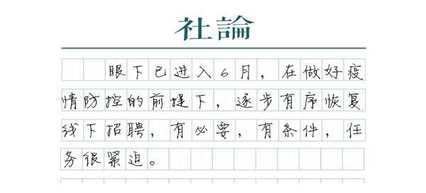 實(shí)際上,一些地方已在有條件嘗試線下招聘活動,實(shí)現(xiàn)了疫情防控和促進(jìn)就業(yè)的兼顧。這為線下招聘在全國的逐步恢復(fù)和常態(tài)化,積累了經(jīng)驗(yàn),也奠定了信心。